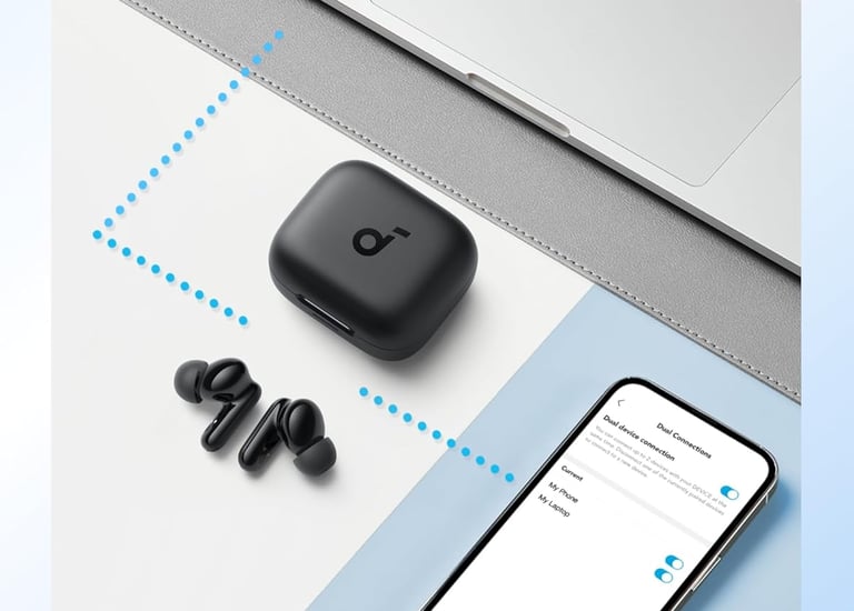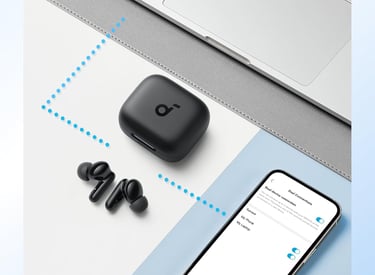 Soundcore P30i da Anker, Fone de Ouvido Bluetooth 5.4 com Cancelamento de Ruído Adaptativo, Graves Poderosos, 45H de Reprodução, Estojo 2-em-1 com Suporte para Celular, IP54, Fone sem fio TWS, Preto